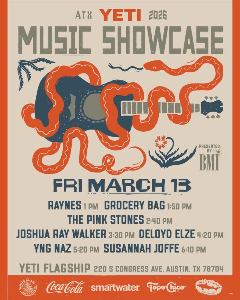 One of BMI’s largest SXSW activations returns to the YETI Flagship store on South Congress for a two-day showcase on March 12 and March 13.