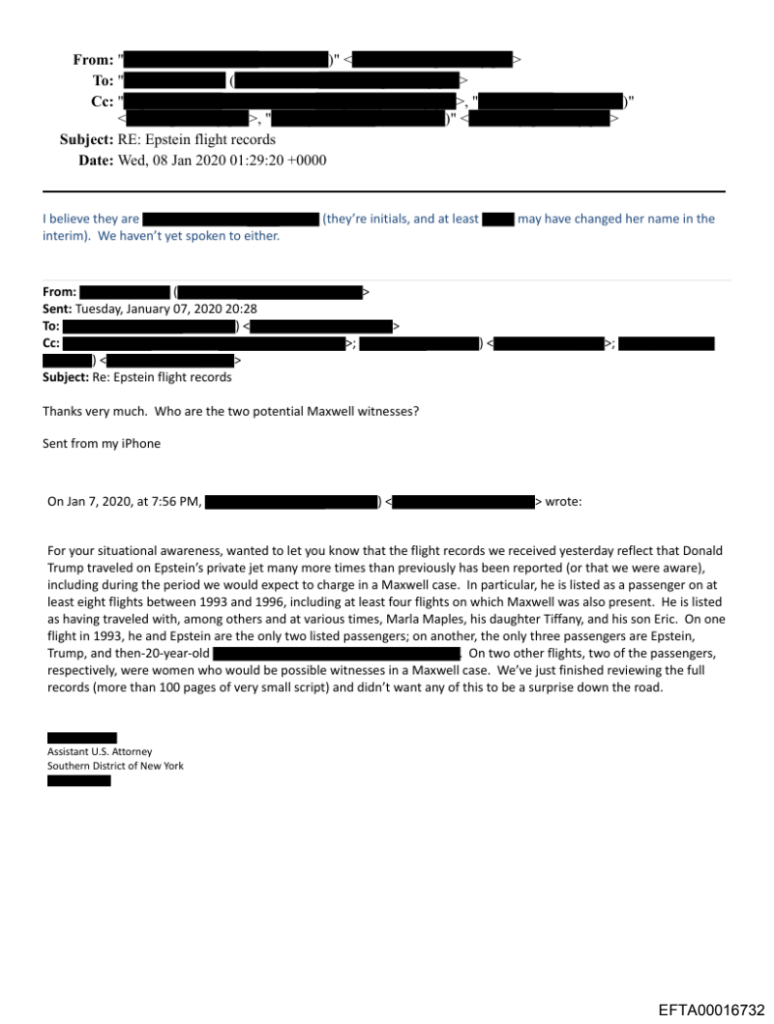 Internal communications included in the release show prosecutors were aware that certain information — particularly Trump’s presence in flight records — could carry political consequences. Emails indicate concern about avoiding “surprises” later, reflecting an awareness that disclosures could collide with election-year politics and public trust.