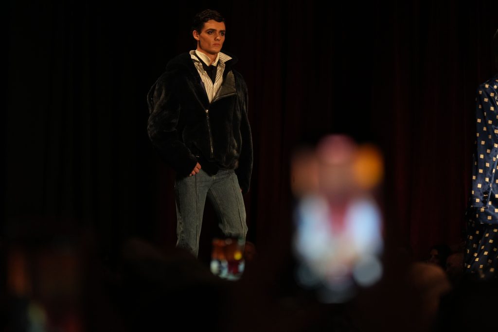 Fabric choices also supported the brand’s luxury-streetwear identity. Hunte used denim in tailored forms. He leaned into embossed textures. Leather appeared in ways that felt both functional and dramatic.