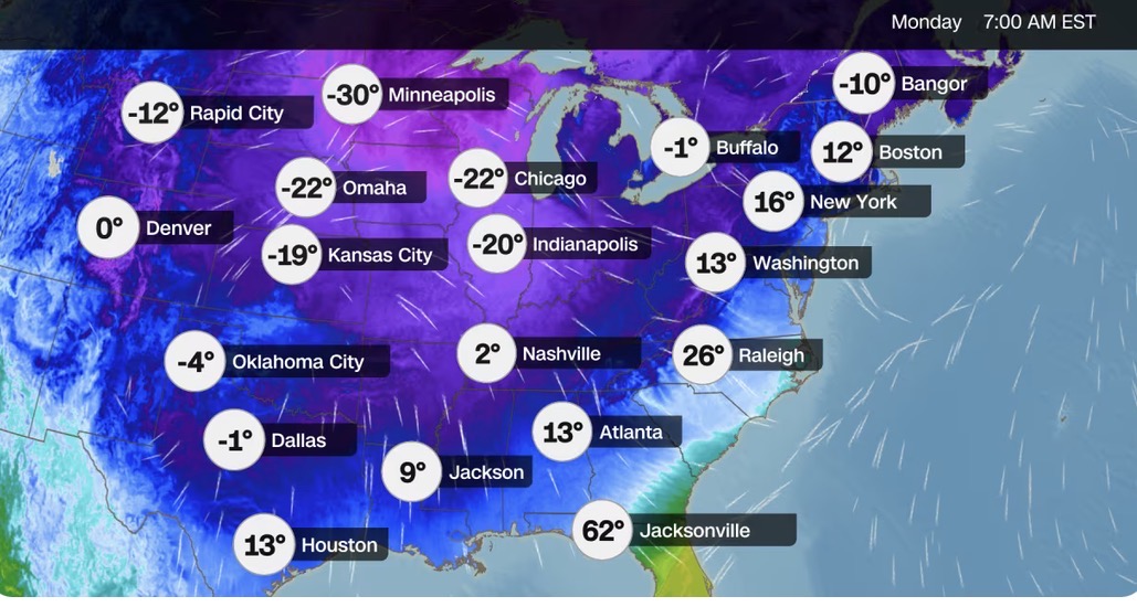 What makes this storm different is the combination. In the South, ice is loading trees and power lines. Meanwhile, in the Northeast and Mid-Atlantic, heavy snow is shutting down major airports and slowing road crews. On top of that, Arctic air is keeping conditions risky even after precipitation moves out.